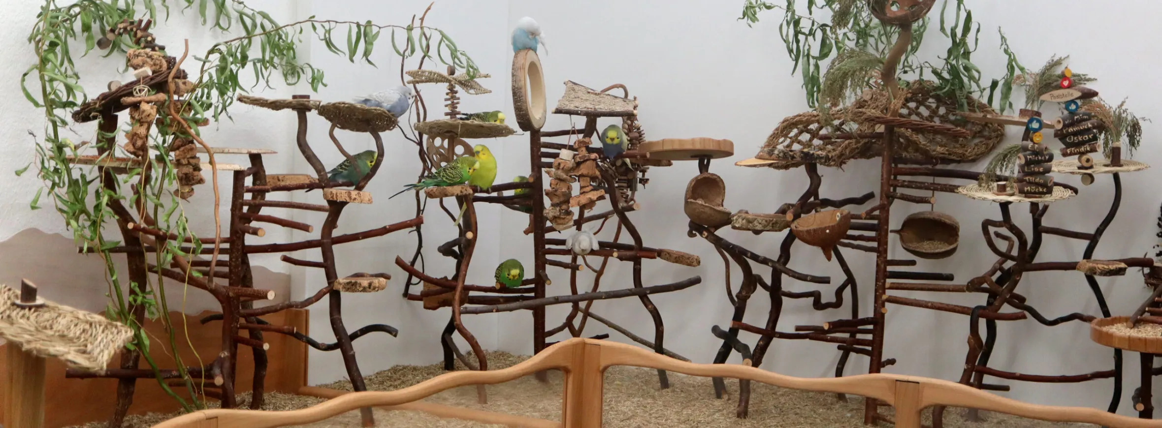 Findik und Pamuk mussten aus gesundheitlichen Gründen abgegeben werden. Die vorige Familie war sehr liebevoll und umsorgten ihre Schätze optimal. Da Findik nicht fliegen kann, war es ihnen wichtig, dass sie in eine fußigerechte Haltung kommen. Mit der Arthrose in ihren Füße, nimmt sie Sitzbrettchen, Weidenteller und Ähnliches sehr dankbar an.